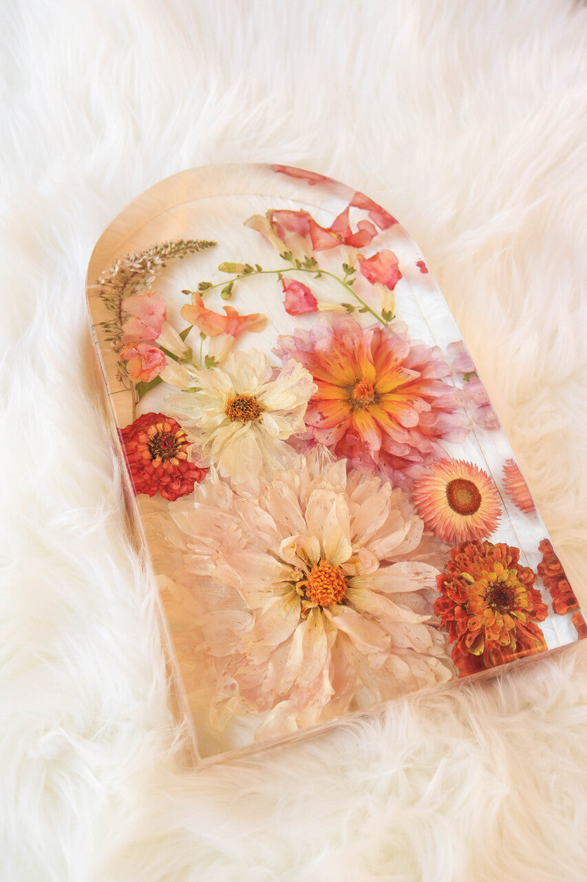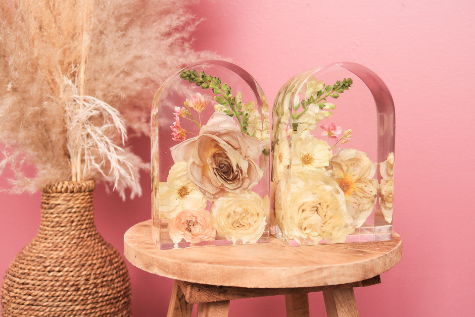 Our resin options are great for brides who want to display their flowers in their three dimensional form just as they were on their wedding day!