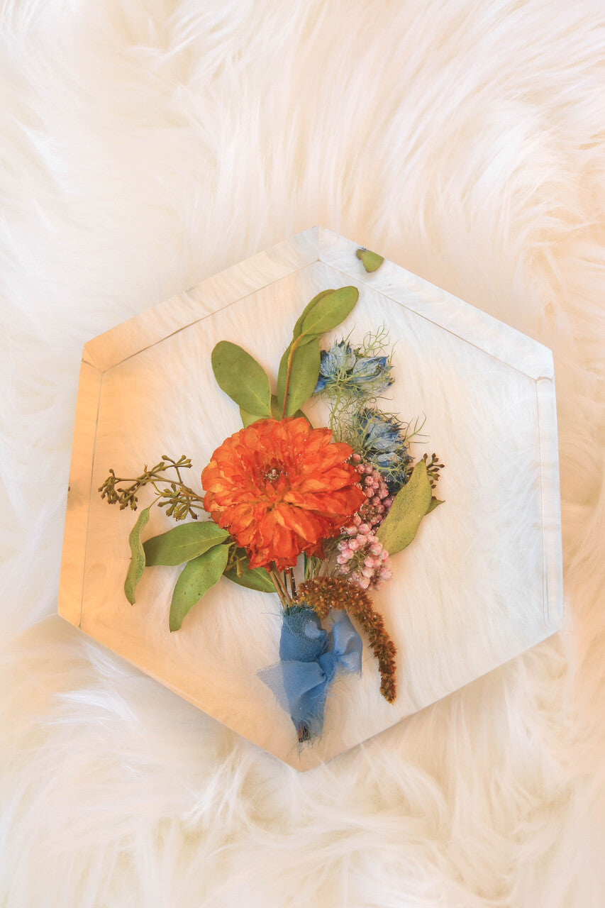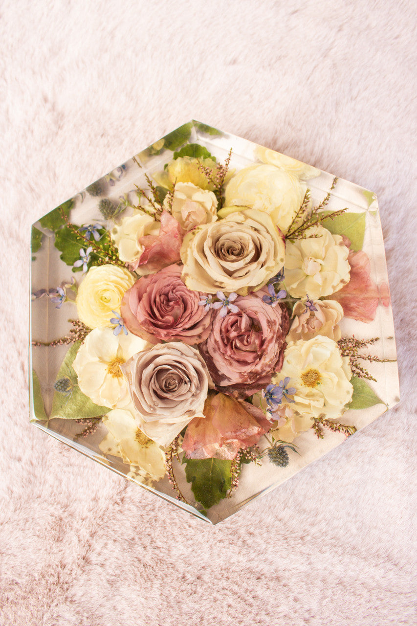 Our resin options are great for brides who want to display their flowers in their three dimensional form just as they were on their wedding day!